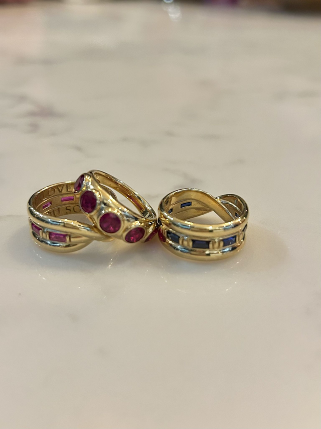 8 Lab-grown Sapphire or Ruby Baguette stones engraved on the inside with "LOVE YOU SO".