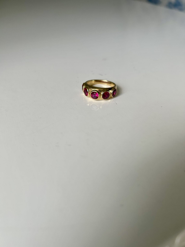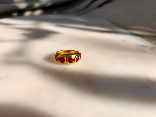 Ruby Quintet Ring in 9ct Gold or 18ct Gold Vermeil with Lab-grown Rubies and 4 microns of gold plating.